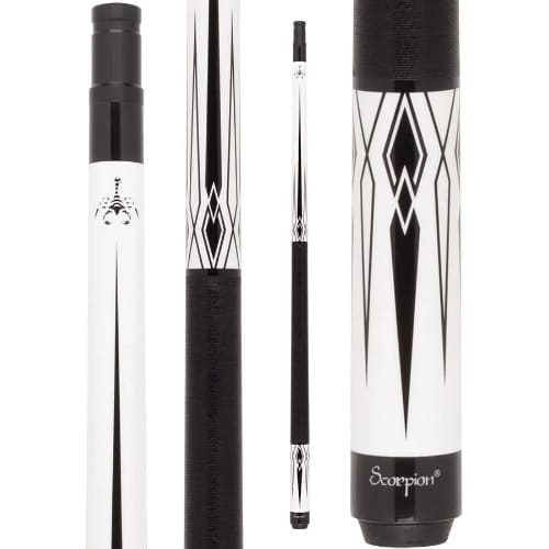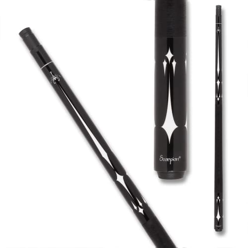 Scorpion’s pool cues feature fiberglass-coated shafts for exceptional resistance against warping and dings, available in various lines including the professional Johnny Archer Series and limited editions, all built with high-quality maple shafts and precise conical tapers for smooth, consistent play.
